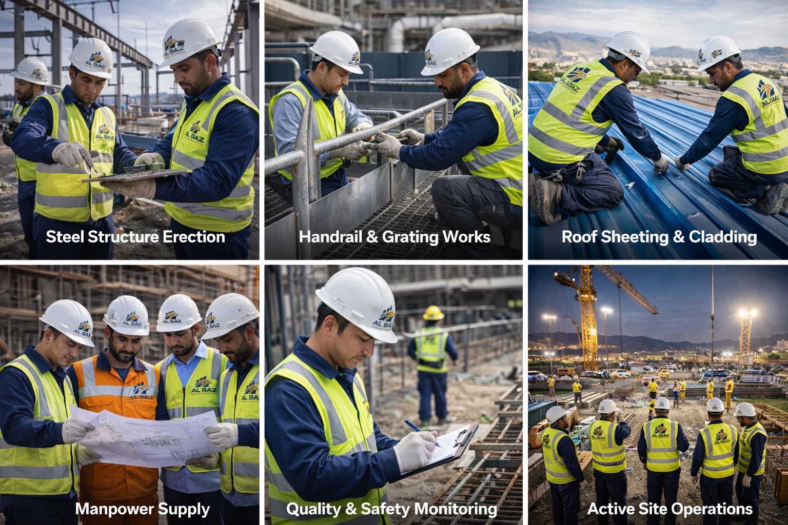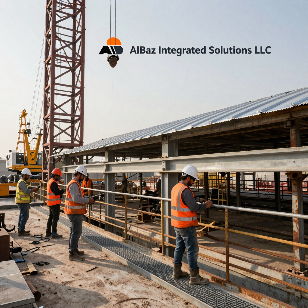 Al Baz Integrated Solutions LLC is a trusted service provider in Oman, specializing in steel structure erection, handrail and grating works, roof sheeting, cladding, and skilled manpower supply. We are committed to delivering high-quality workmanship with a strong focus on safety, reliability, and timely project completion. Our experienced team ensures every project is executed to meet industry standards and client expectations.