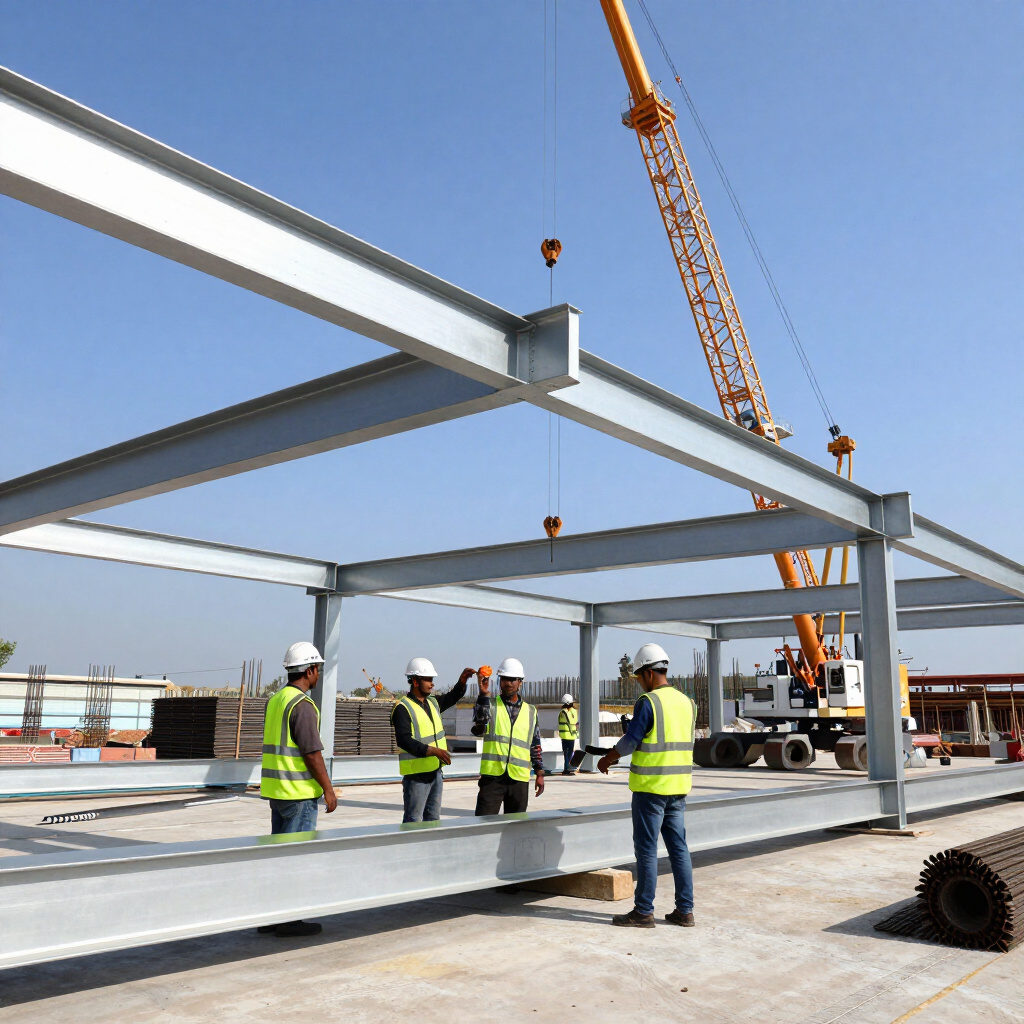 Professional steel structure erection services with skilled manpower and proper safety standards.